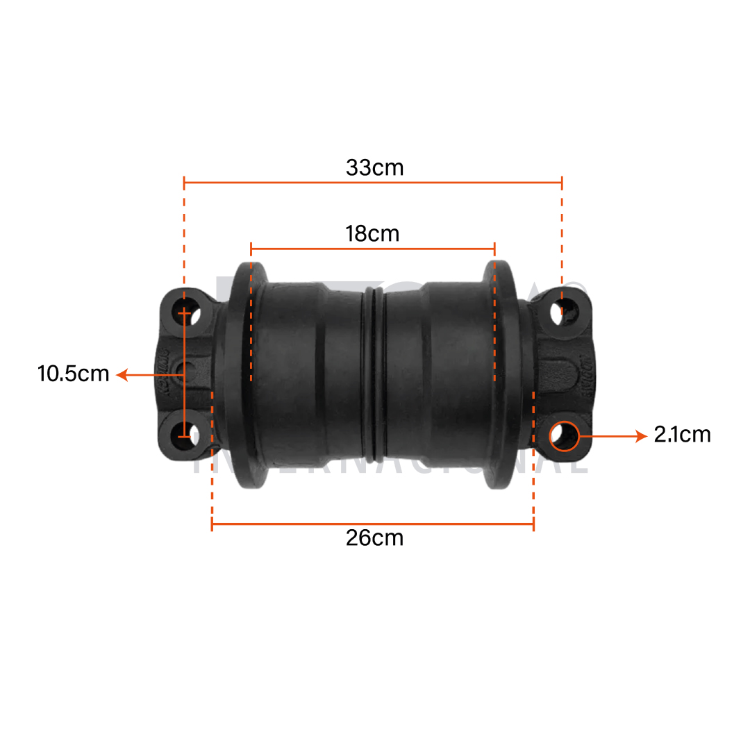 Compatible con CAT 322C y 324C, este rodillo inferior asegura un ajuste preciso y una instalación segura, distribuyendo la carga de manera uniforme para reducir el desgaste del tren de rodaje y prolongar la vida útil de la excavadora.