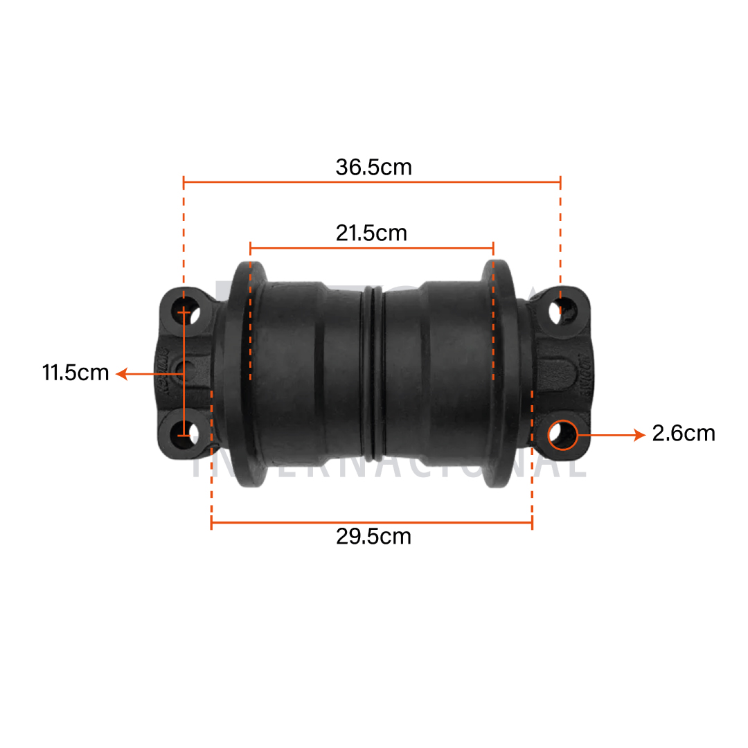 Compatible con CAT 336D y 330, este rodillo inferior asegura un ajuste preciso y una instalación segura, distribuyendo la carga de manera uniforme para reducir el desgaste del tren de rodaje y prolongar la vida útil de la excavadora.