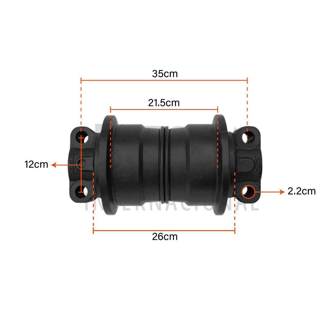 Compatible con SK350LC-8 y SK350LC-9, este rodillo inferior asegura un ajuste preciso y una instalación segura, distribuyendo la carga uniformemente para reducir el desgaste del tren de rodaje y prolongar la vida útil de la excavadora.