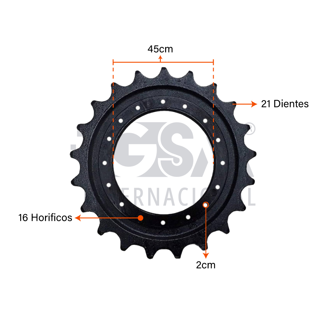 Ideal para aplicaciones de construcción, minería ligera y movimiento de tierra, este sprocket ofrece un ajuste preciso y mantiene la eficiencia de la máquina en cada jornada de trabajo.