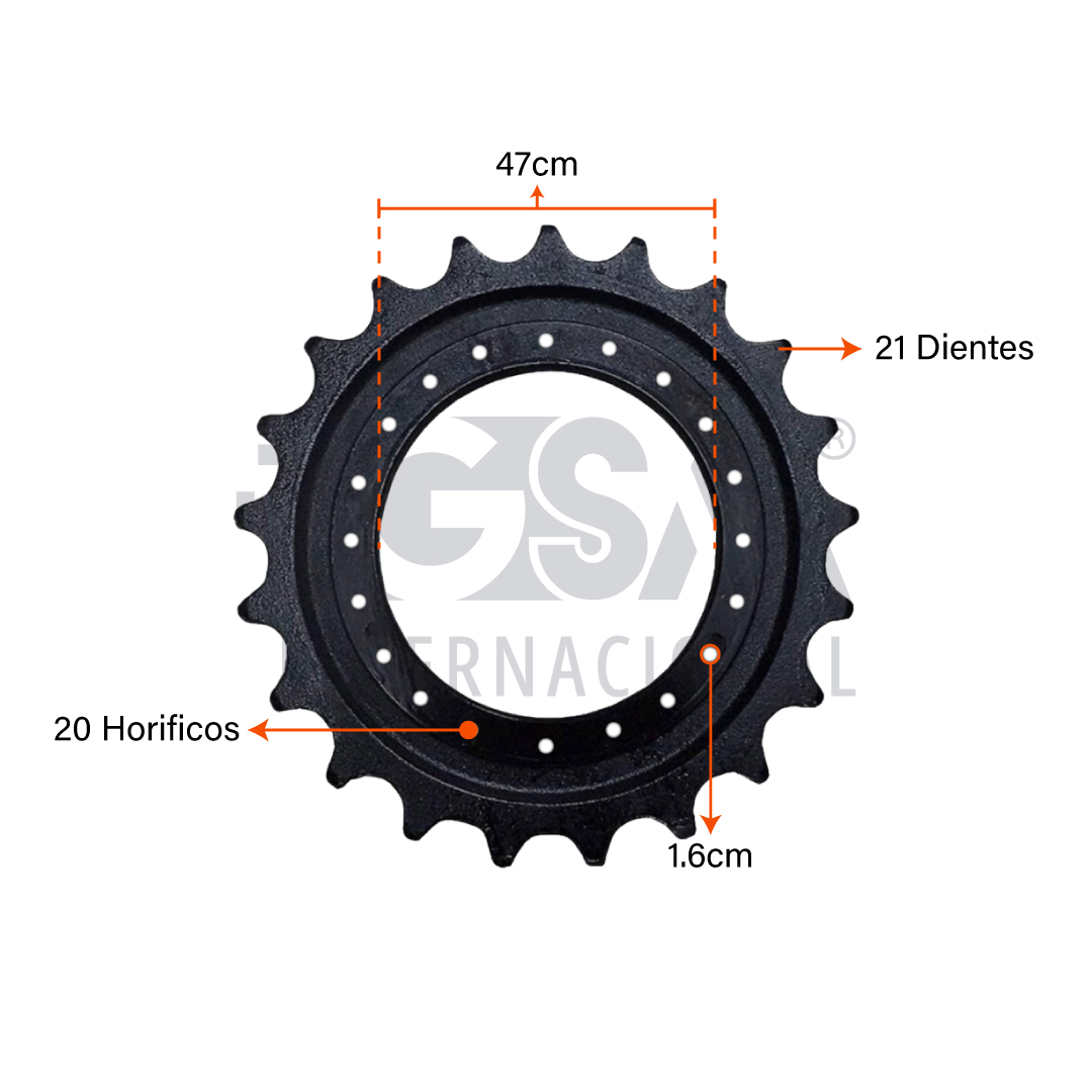 Compatible con modelos PC200, PC210 y PC220, este sprocket permite una transmisión de potencia óptima, reduciendo el desgaste del tren de rodaje y prolongando la vida útil de la máquina. Su diseño reforzado facilita una instalación rápida y segura, manteniendo la productividad en todo momento.